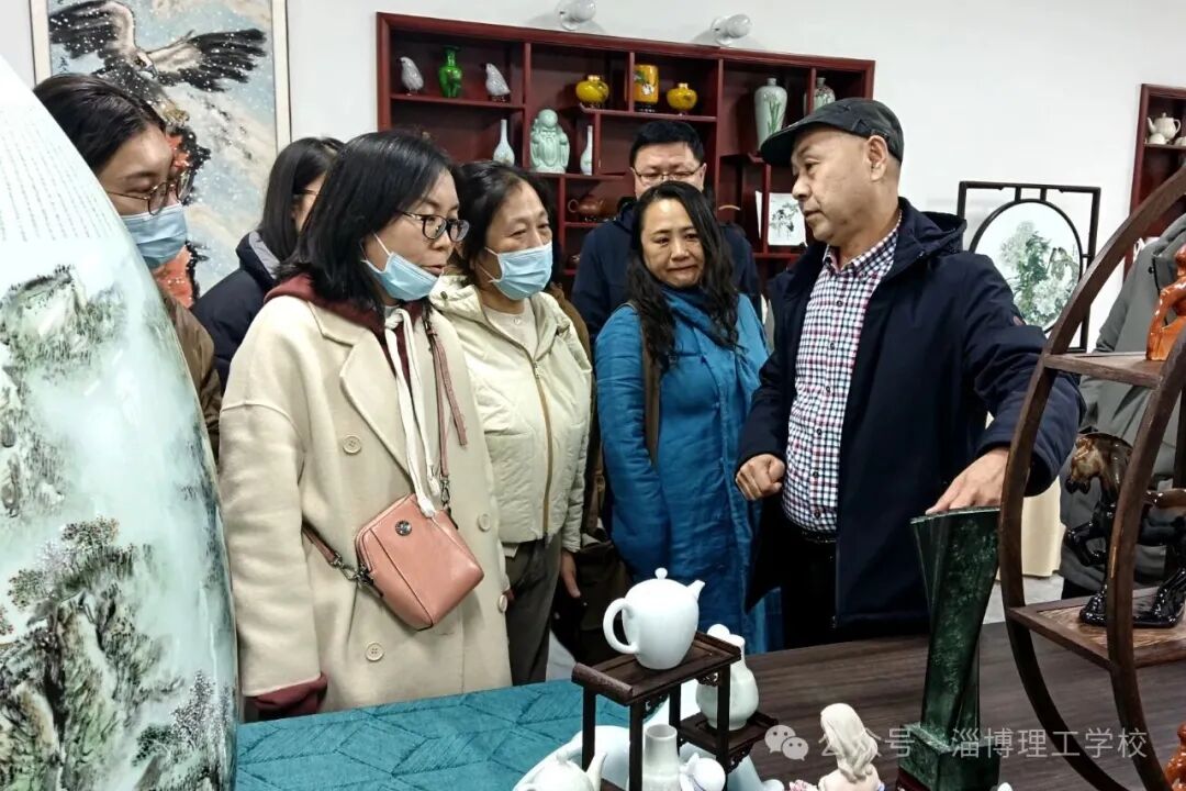 为期两天(21日和29日)的培训包含了理论教学与实践操作,全方位覆盖陶瓷制作的关键技艺。课程设置上,除开设陶瓷彩绘、陶瓷基础成型、陶瓷拉坯等核心课程外,还组织学员分别走进“都瓷苑”和淄博永强陶瓷艺术博物馆、李秋峰陶瓷艺术馆参观学习。期间,学院特别邀请中国工美行业艺术大师刘永强、中国刻瓷艺术大师李秋峰亲临授课。大师们凭借深厚的行业积淀与精湛的技艺,为参训教师带来了专业、悉心的指导。